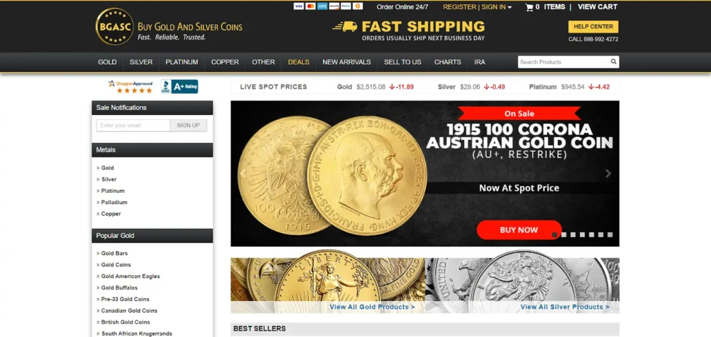 The platform offers a simple buying experience with secure payment options. Customers appreciate BGASC’s quick shipping and great customer service. It is a popular choice for those looking to buy gold bullion online.
