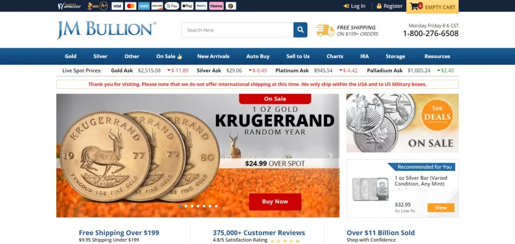 The platform provides free shipping on orders over $199 and secure checkout. With live spot prices and market updates, JM Bullion helps investors stay informed. It’s a trusted choice for buying physical bullion.