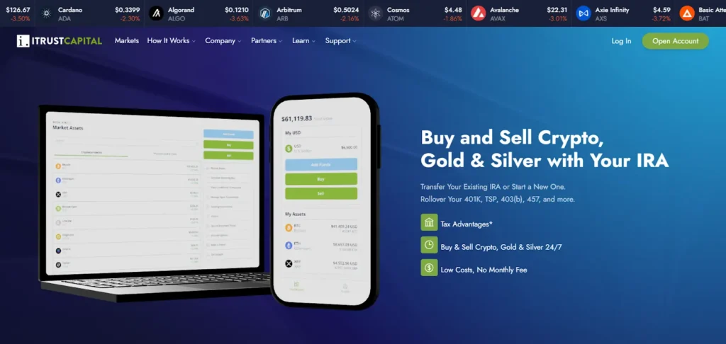 iTrustCapital specializes in offering a platform for investing in cryptocurrencies and precious metals through IRAs. They provide a secure way to invest in gold and silver using tax-advantaged accounts. iTrustCapital allows investors to manage their portfolios online with real-time updates and transparent pricing.