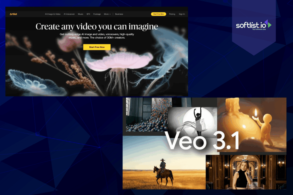 - Veo 3/3.1 is now in Artlist, offering 720p/1080p text-to-video with native synced audio.