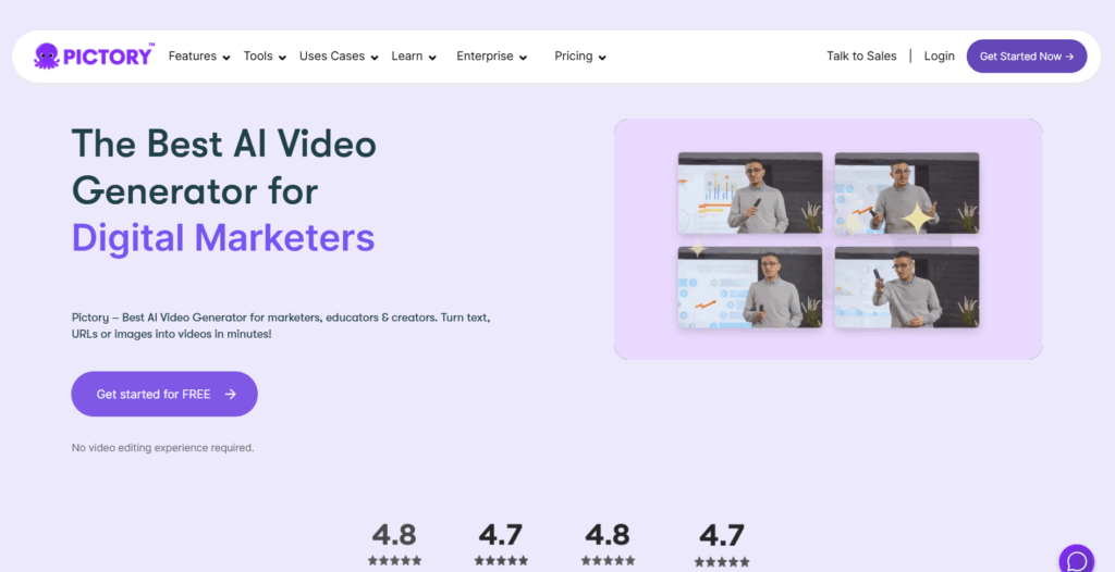 Pictory transforms long-form content into short video summaries, making it ideal for repurposing AI-generated educational content and explainer videos created with Veo 3. The platform automatically identifies key points and creates engaging highlight reels that complement the comprehensive content produced through Artlist AI video generation.