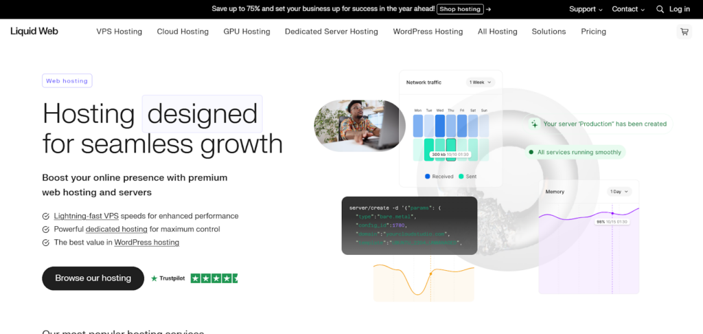 Liquid Web is a premium hosting provider specializing in managed VPS hosting and dedicated server hosting. It delivers high-performance hosting solutions optimized for WordPress websites and other platforms.