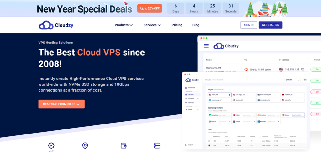 With managed VPS hosting and cloud hosting options, Cloudzy is a versatile hosting provider for a variety of needs. It’s ideal for those seeking reliable and secure hosting solutions.