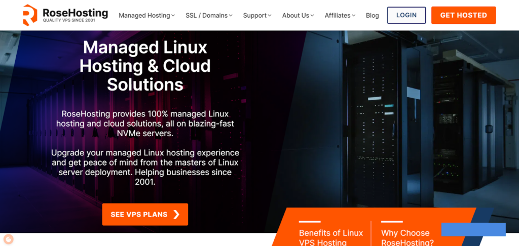 RoseHosting is a premium hosting provider specializing in managed WordPress VPS hosting plans. It delivers hosting services with dedicated resources and advanced features for WordPress sites. RoseHosting’s hosting environment is optimized for speed, reliability, and security.