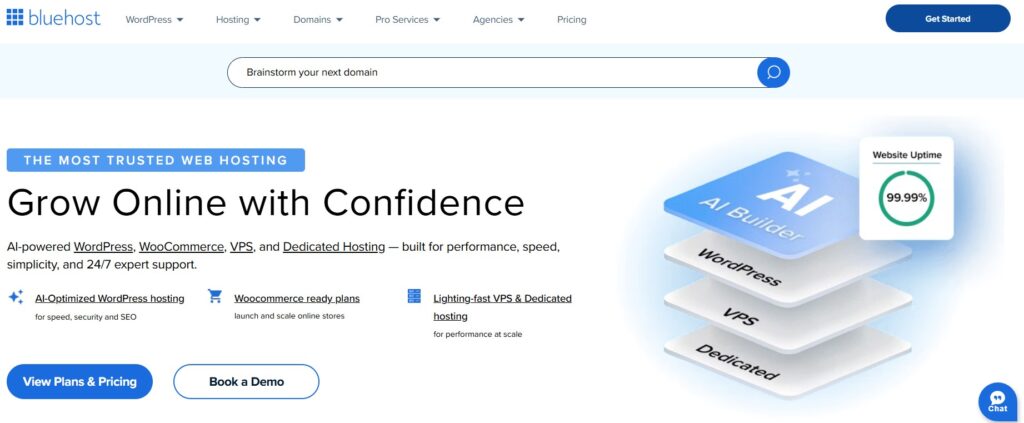 Bluehost provides WordPress-optimized hosting with official WordPress.org recommendation status. The platform balances affordability with reliable performance for small to medium websites.
